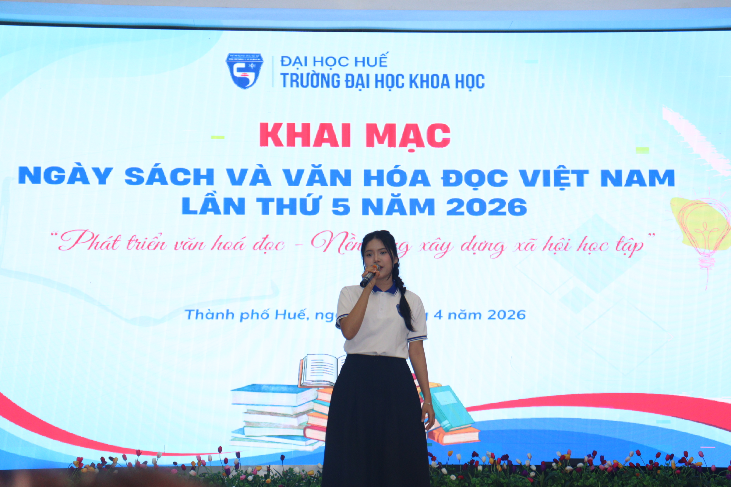 Ngày 16/4/2026, tại Hội trường A1, Trường Đại học Khoa học, Đại học Huế đã tổ chức Chương trình hưởng ứng Ngày Sách và Văn hóa đọc Việt Nam lần thứ 5 năm 2026 với chủ đề: “Phát triển văn hóa đọc – nền tảng xây dựng xã hội học tập”. Chương trình nhằm tôn vinh giá trị của sách, khẳng định vai trò của việc đọc trong học tập và đời sống, đồng thời góp phần lan tỏa văn hóa đọc trong cộng đồng sinh viên.