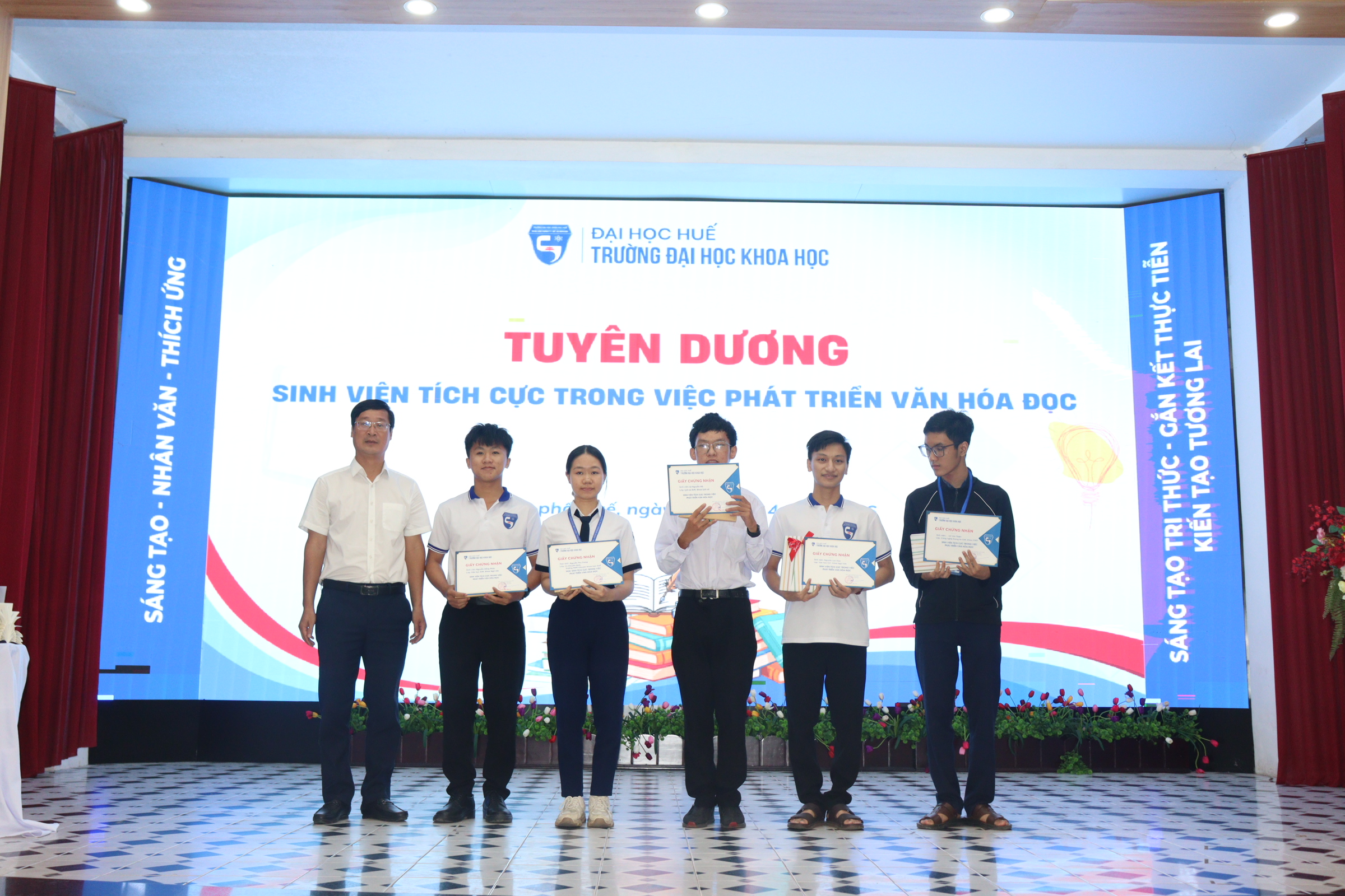 Trong khuôn khổ chương trình, Nhà trường đã tuyên dương và tặng sách cho các sinh viên tích cực trong việc tham gia và lan tỏa văn hóa đọc, gồm: Nguyễn Hồng Phúc (K49 Văn học), Lê Nguyễn Hà (K49 Lịch sử), Nguyễn Thu Trang (THPT Chuyên Khoa học Huế), Nguyễn Lưu Hoàng (K47 Văn học) và Lê Văn Thiện (K49 Công nghệ thông tin).